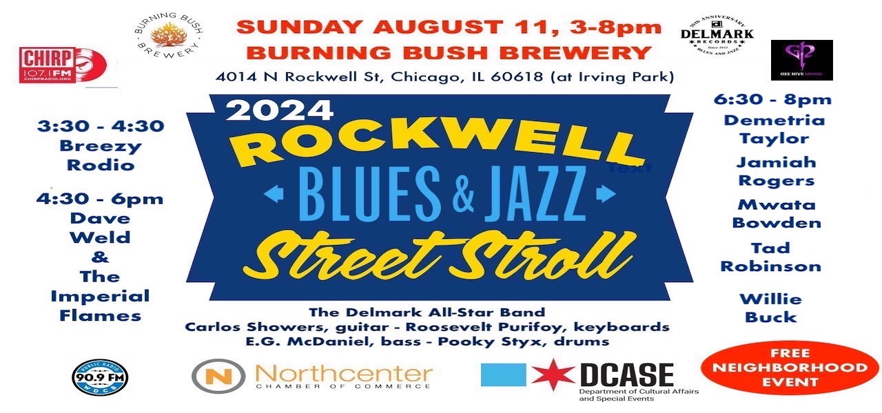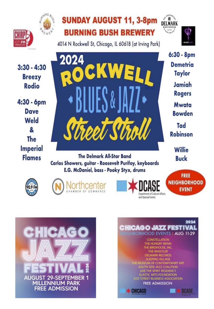 Delmark News BlogEventsROCKWELL STREET STROLL THIS SUNDAY! Julia A. Miller1 year ago1 year ago01 min mins Post navigation Previous: 2024 Rockwell Blues &Jazz Str oll is back! This Sunday, Aug 11, 3pm-8pm, Burning Bush Brewery, and it’s FREE! Demetria Taylor, Tad Robinson, Mwata Bowden, Willie Buck, Dave Weld, Breezy Rodio, Jamiah Rogers, and The Delmark All-Stars!!Next: CHICAGO JAZZ FEST and DELMARK Live Jazz! Leave a Reply Cancel replyYour email address will not be published. Required fields are marked *Comment * Name * Email * Website Notify me of new posts by email. Δ
