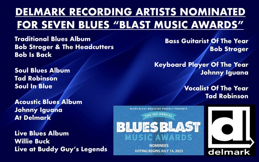 Delmark artists receive 7 BLUES BLAST Award nominations! Bob Stroger, Tad Robinson, Willie Buck, Johnny Iguana!