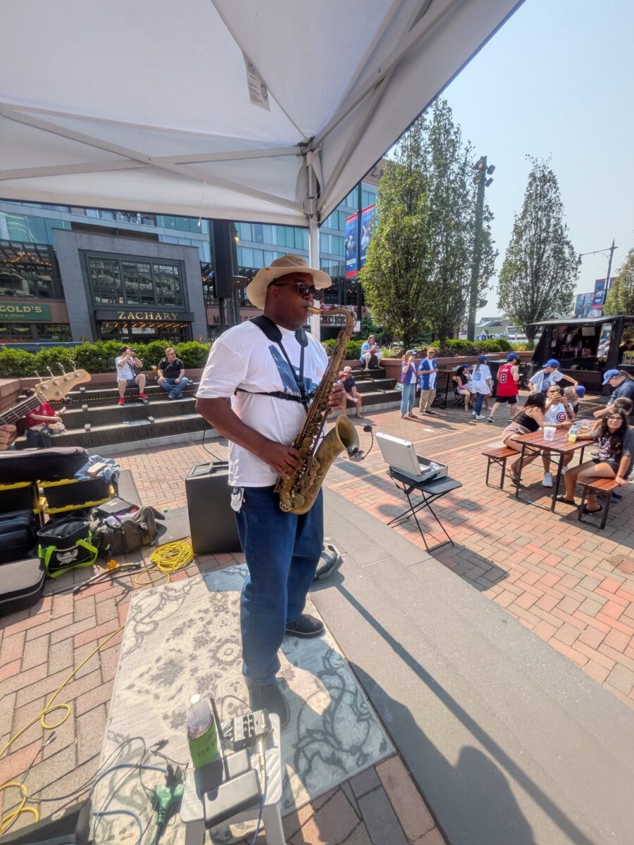 Take a look at these great shots of DAVE WELD & THE IMPERIAL FLAMES at the recent Chicago Cubs’ Gallagher Way Blues Friday!! Dave Weld has a brand new Delmark compilation LP coming soon – Bluesin’ Through the Years!