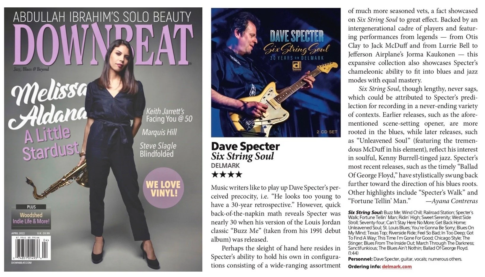 “Guitarist Dave Specter is playing gutsy Magic Sam and Otis Rush Chicago blues with undercurrents of T-Bone Walker and Kenny Burrell. He is phenomenal here (on Message in Blue) cutting the figure of someone who is in complete control of his craft.” 4 Stars -Downbeat