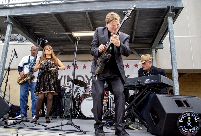 “One thing is that I have the backing and help from one of the oldest and most established blues and jazz labels in the world, Delmark Records, which is growing now, and has never stopped growing and getting better and better! We sometimes rehearse there, too.” (Dave Weld & The Imperial Flames on stage, Windy City Blues Challenge, Chicago IL / Photo by Norman Sands)