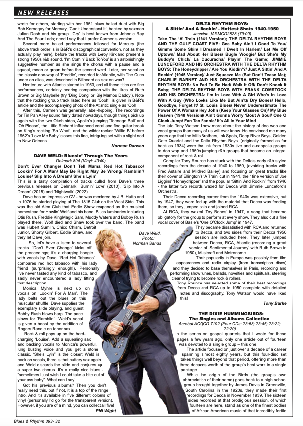 Dave Weld is a Delmark recording artist, blues musician and a dedicated blues fan. Thanks also to Dick Shurman and Jeff Taylor.