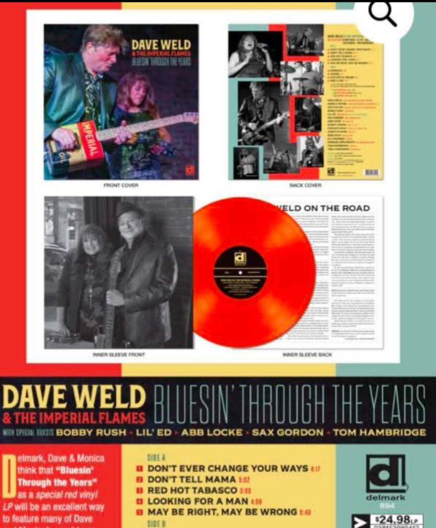 Dave Weld’s fourth Delmark Album “Bluesin’ Through The Years” is a compilation album from 3 albums by the band; Burnin’ Love (2010), Slip into A Dream (2015) and Nightwalk (2022) Dave Weld and Monica Myhre take turns on vocals, with Dave leading the way on guitar and slide guitar. Special guests on the record include Bobby Rush on Harp, Lil’ Ed on Rythm Guitar, Abb Locke on Alto Sax, Sax Gordon on Alto and Baritone Sax and Tom Hambridge on Drums.