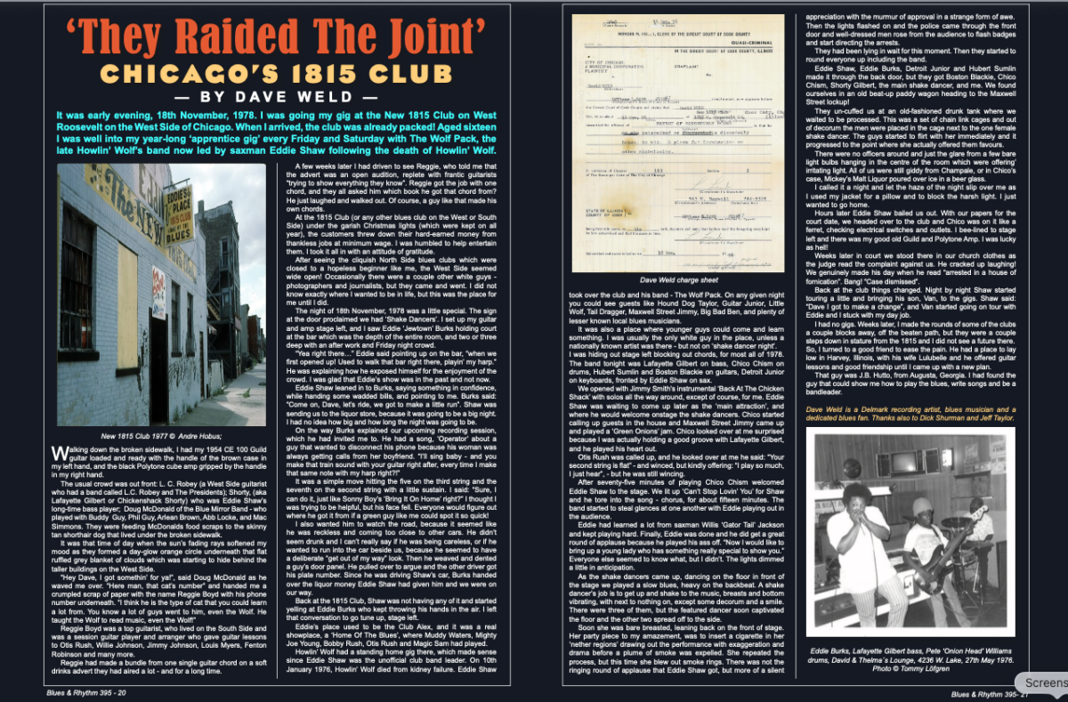 Check out this fascinating article on a special late ’70’s Chicago West Side Blues night at the much-missed blues bar, Eddie Shaw‘s 1815 Club from Delmark recording artist, guitarist/vocalist/bandleader, DAVE WELD in UK’s premier blues magazine, BLUES & RHYTHM! Dave Weld & The Imperial Flames have a new Delmark Records compilation LP, Bluesin’ Through The Years– also with a standout review in B&R, one of our all-time favourite blues publications!