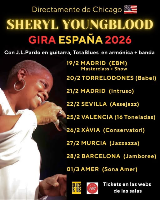 This February we will be on different stages of Spain, with Jose Luis Pardo + local musicians, accompanying the excellent and powerful singer from Chicago SHERYL YOUNGBLOOD. Tickets are now on sale on the websites of the various rooms. As far as Catalonia is concerned, there will be only 2 concerts, at the Jamboree Live Music of BCN and at the Sona Amer de Amer (Girona). I’m leaving both links to grab tickets. DON’T MISS IT!!!! FROM THE USA TO YOUR CITY!